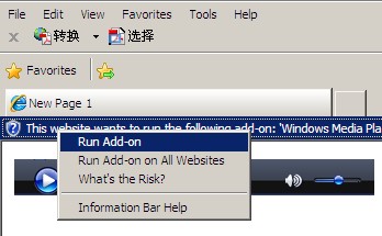 在IE网页上方会出现一条如下信息 "This website wants to run..."