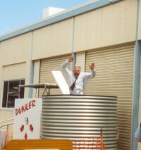 exciting funfair game. The dunkee will sit on a metal bar hanging above a pool of