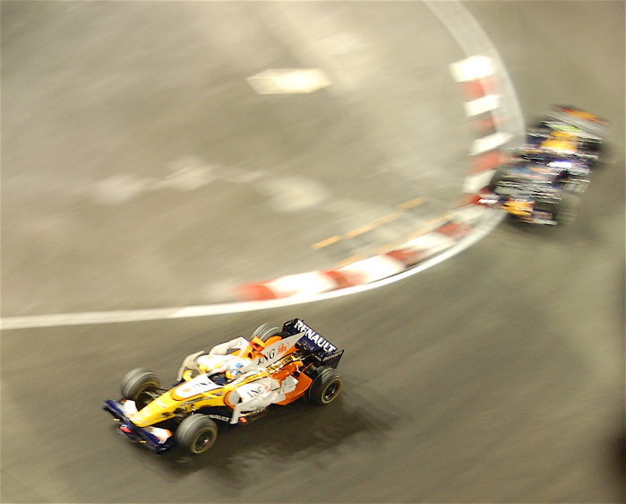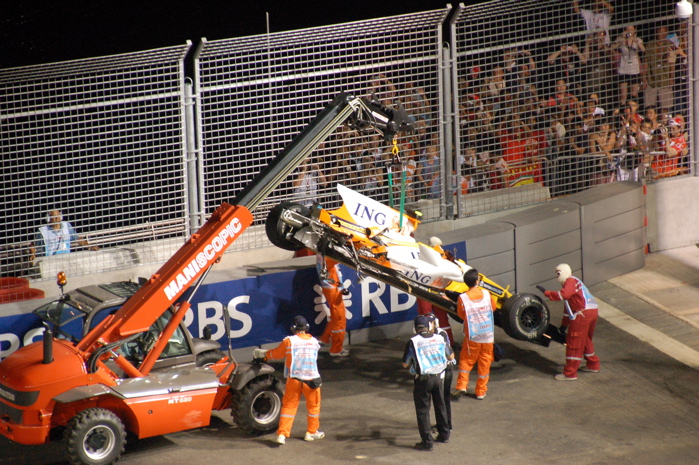 牺牲小我,完成大我。Nelson用半辆车的代价帮Alonso夺得新加坡夜间赛车的冠军