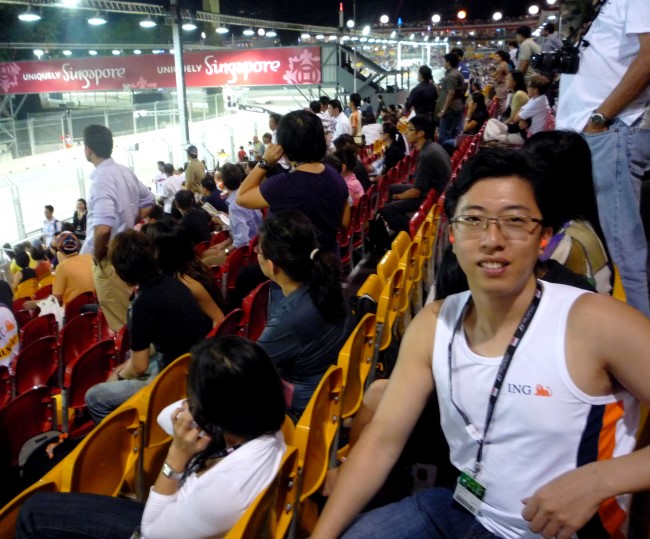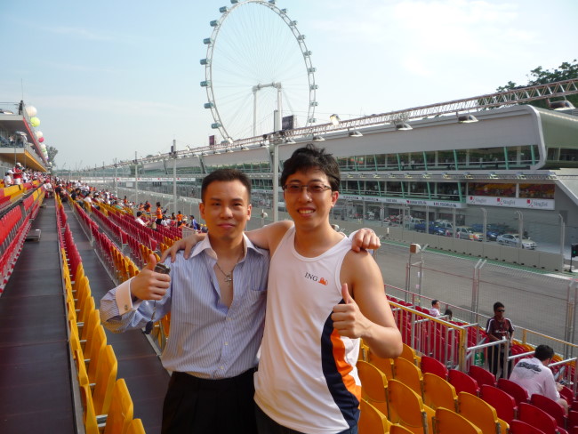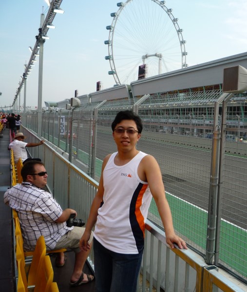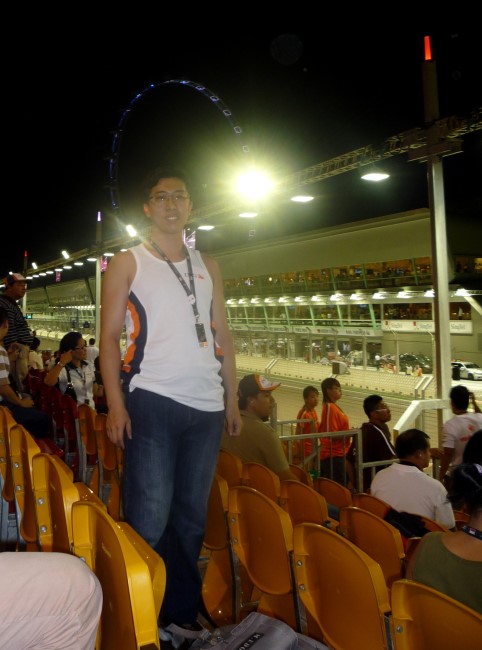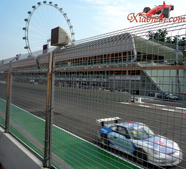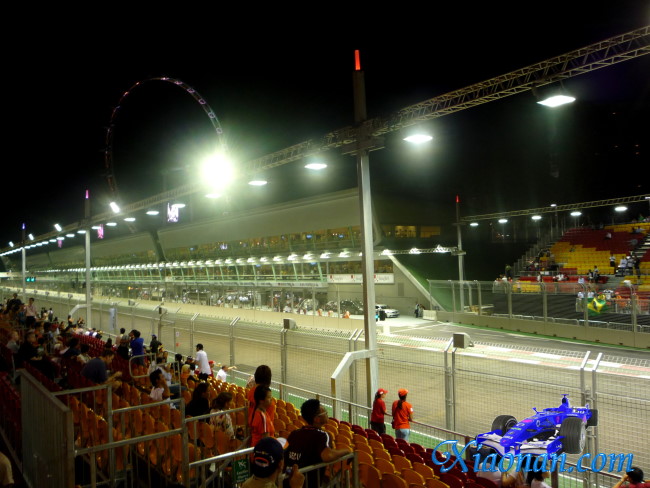 礼拜五偶特地请了半天假,1点多就出发去看F1.在Lavender地铁站有好多通勤车送观众到现场,基本不用等。我们座位在Gate1的Marina
