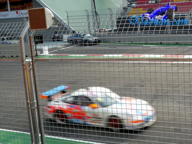 人类文明史上第一次夜间赛车又是完全陌生的路线且街道有几段比较窄,好几辆车半路冒烟了。总结出来F1第一大特点就是吵,不戴耳塞在前几排待个把小时绝对耳鸣(就连在Marina