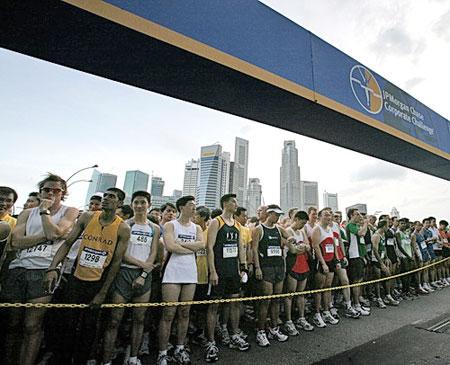 出产的牛高马大的洋人。由于第一名那位仁兄与我之间的位移实在太远,最后半公里本来准备悠着点跑,结果在离终点300米的榴莲壳外被我公司的IT总舵主给超过了,这位仁兄当天穿的也是公司的衣服,我一看是自己人马上贸足了劲以100米冲刺的速度突进,该舵主还未从