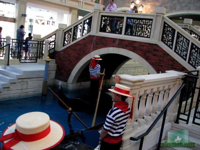购物中心里还有一条河, 游客可以乘坐贡多拉