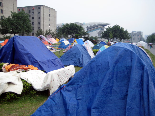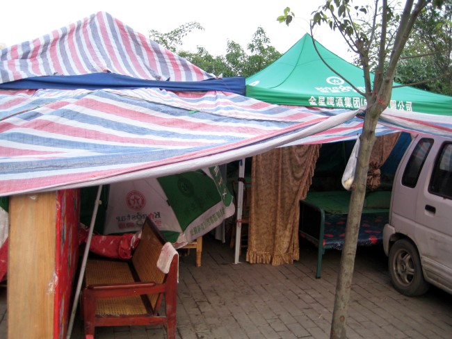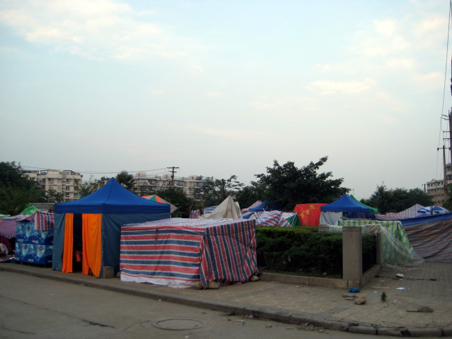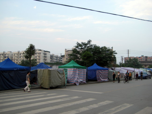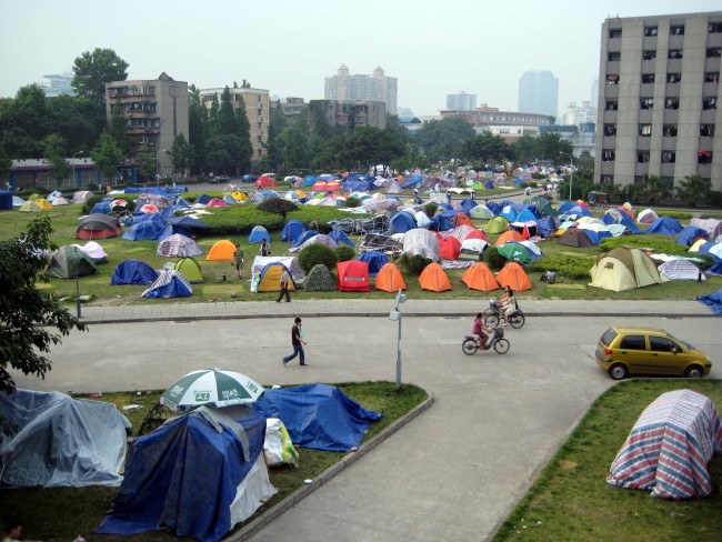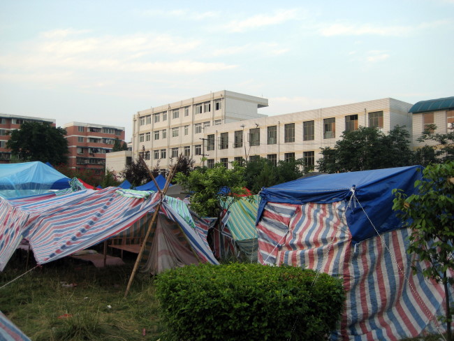 5月在成都的日子里,每天晚上都要被余震摇醒好多次,平时热闹非凡的春熙路异常冷清,商场里除了店员几乎见不到多少人影,楼下的公园里、川大的校园里挤满了帐篷和流离失所的人们,街道两旁到处都能看到捐款捐物的站点,无数的志愿者正为了点燃心中的一线希望而不辞辛苦的劳作。