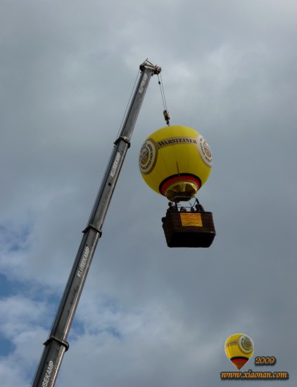 Warsteiner Balloon carrying all the VIPs missed the speaker pole by