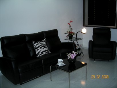 客厅里的沙发都可以向后靠并完全放平,可以躺着看电视顺便眯一觉